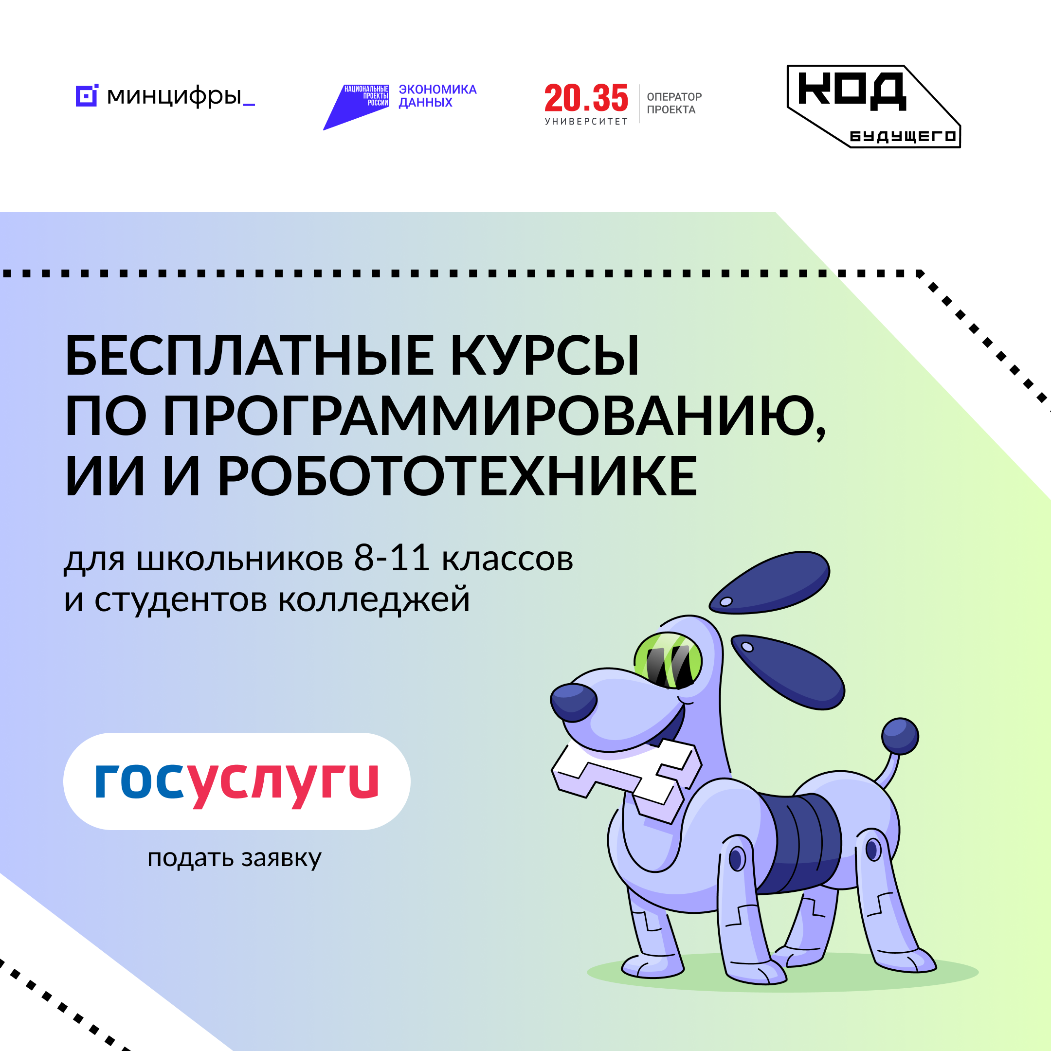 На Госуслугах стартовал прием заявлений на бесплатное обучение по проекту «Код будущего» в 2025-2026 учебном году. Принять участие могут школьники 8-11 классов, а также студенты колледжей и техникумов, обучающиеся по ИТ-специальностям.